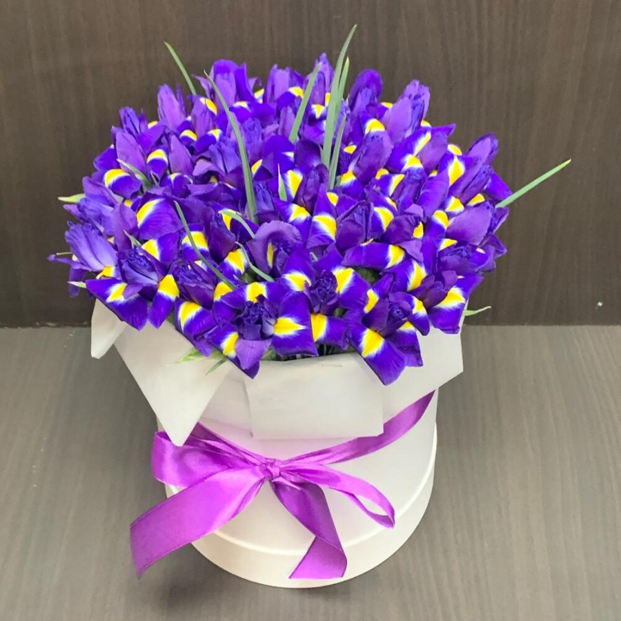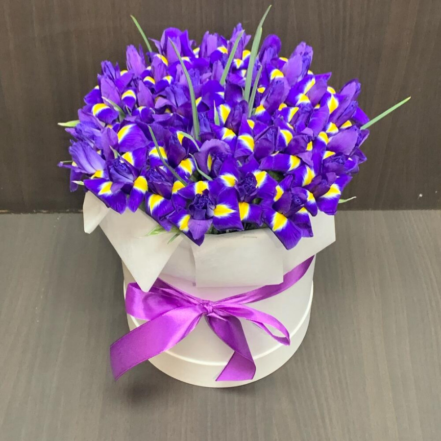 51 фиолетовый ирис в шляпной коробке в Лесном