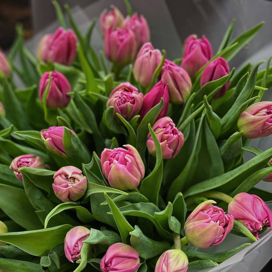 Букет из 31 розового пионовидного тюльпана в Лесном