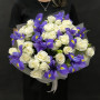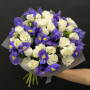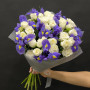 Букет из синих ириcов и белой кустовой розы в Лесном