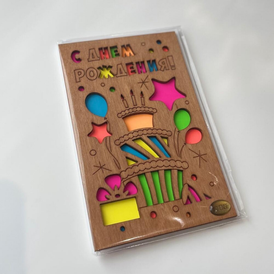 Открытка деревянная «С Днем Рождения» в Лесном